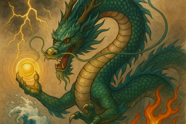 Comme nous l’avons vu, Ryūjin est inspiré des dragons chinois. Là-bas, les rois-dragons (Longwang) règnent sur les mers et cours d’eau. Ils peuvent eux aussi contrôler les marées et faire tomber la pluie. Quant à leur rôle, il est d’apporter la fertilité et la destruction via les eaux.