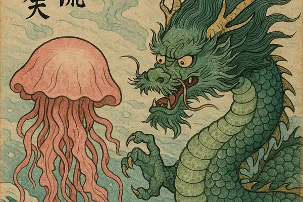Si vous vous demandez quel est le mythe japonais sur les méduses, alors voici l’histoire complète. La légende raconte que le dieu dragon Ryūjin avait demandé à ses messagères, les méduses, de lui rapporter le foie d’un singe. Certaines versions du mythe japonais indiquent que cela lui permettrait de guérir d’une maladie. Les méduses s’exécutent et partent à la recherche de l’animal. L’une d’entre elle en trouve un, mais le singe lui dit que son foie était caché quelque part dans la forêt. Il part donc le chercher mais ne revient jamais. Ryūjin, témoin de cette histoire, s’en prend à la méduse fautive. Il la piétine jusqu’à la rendre gélatineuse. Ce qui explique l’aspect des méduses aujourd’hui.